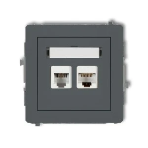 DECO Gniazdo telefoniczne pojedyncze 1xRJ11 + komputerowego pojedyncze 1xRJ45, kat. 5e, 8‑stykowy, beznarzędziowe grafitowy mat