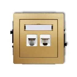 DECO Gniazdo telefoniczne pojedyncze 1xRJ11 + komputerowego pojedyncze 1xRJ45, kat. 5e, 8‑stykowy, beznarzędziowe złoty 29DGTK