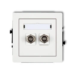 DECO Mechanizm gniazda antenowego podwójnego typu F (SAT) pozłacany, biały mat 25DGF‑2.1