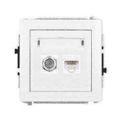 DECO Mechanizm gniazda antenowego poj. typu F (SAT) + gniazda komp. poj. 1xRJ45, kat. 5e, 8‑stykowy, biały mat 25DGFK‑1