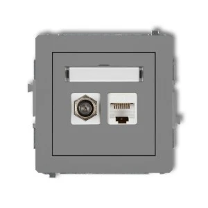 DECO Mechanizm gniazda antenowego poj. typu F (SAT) + gniazda komp. poj. 1xRJ45, kat. 6, 8‑stykowy szary mat 27DGFK‑3
