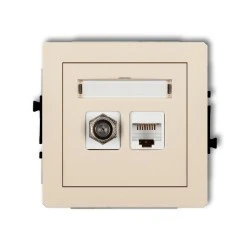 DECO Mechanizm gniazda antenowego poj. typu F (SAT) + gniazda komp. poj. 1xRJ45, kat. 6 ekranowane, 8‑stykowy beżowy 1DGFK‑5