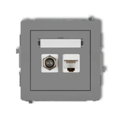 DECO Mechanizm gniazda antenowego poj. typu F (SAT) + gniazda komp. poj. 1xRJ45, kat. 6 ekranowane, 8‑stykowy szary mat 27DGFK‑5