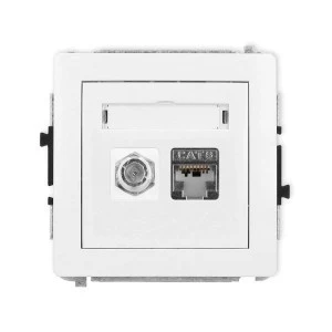 DECO Mechanizm gniazda antenowego poj. typu F (SAT) + gniazda komp. poj. 1xRJ45, kat. 6 ekranowe, 8‑stykowy, biały mat 25DGFK‑5