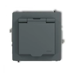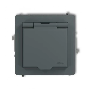 DECO Mechanizm gniazda bryzgoszczelnego z uziemieniem 2P+Z (klapka grafitowy mat, przesłony) grafitowy mat 28DGPB‑1zp