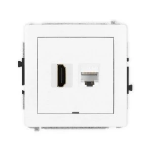 DECO Mechanizm gniazda HDMI 2.0, 4K + gniazda komp. poj. 1xRJ45, kat. 6A, 8‑stykowy, bez pola opisowego biały mat 25DGHKBO‑46A