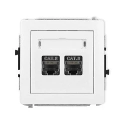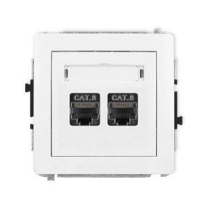 DECO Mechanizm gniazda komputerowego podwójnego 2xRJ45, kat. 8, ekranowane, 8‑stykowy, biały mat 25DGK‑12