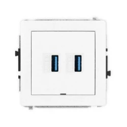 DECO Mechanizm gniazda podwójnego 2xUSB A‑A 3.0, bez pola opisowego, biały mat 25DGUSBBO‑6