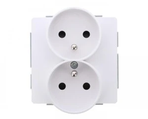 DECO Mechanizm gniazda podwójnego do ramki DECO Soft z uziemieniem 2x(2P+Z) (przesłony torów prądowych), biały mat 25DGPRSO‑2zp