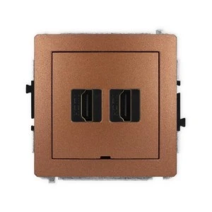 DECO Mechanizm gniazda podwójnego HDMI 2.1, 8K, bez pola opisowego brązowy metalik 9DHDMIBO‑6