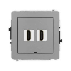 DECO Mechanizm gniazda podwójnego HDMI 2.1, 8K, bez pola opisowego szary mat 27DHDMIBO‑6