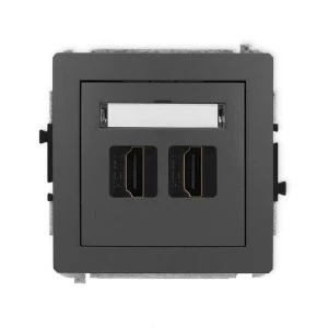 DECO Mechanizm gniazda podwójnego HDMI 2.1, 8K grafitowy mat 28DHDMI‑6