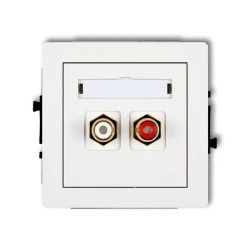 DECO Mechanizm gniazda podwójnego RCA (typu cinch ‑ biały i czerwony, pozłacany), biały mat 25DGRCA‑2