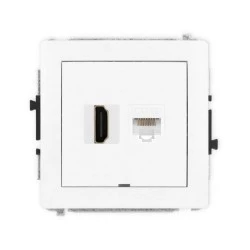 DECO Mechanizm gniazda pojedynczego HDMI 2.0 + gniazda komp. poj. 1xRJ45, kat. 5e, 8‑stykowy, bez pola opisowego, biały mat 25DG