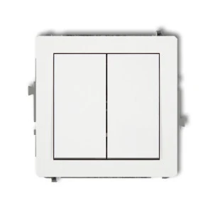 DECO Mechanizm łącznika jednobiegunowego ze schodowym (dwa klawisze bez piktogramów, osobne zasilanie) biały DWP‑10.21