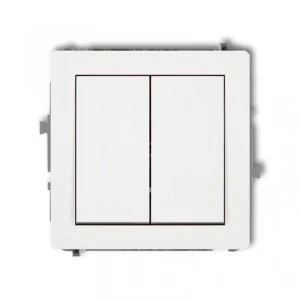 DECO Mechanizm łącznika jednobiegunowego ze schodowym (dwa klawisze bez piktogramów, osobne zasilanie), biały mat 25DWP‑10.21