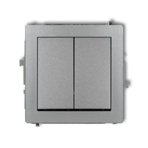 DECO Mechanizm łącznika jednobiegunowego ze schodowym (dwa klawisze bez piktogramów, osobne zasilanie) srebrny metalik 7DWP‑10.2