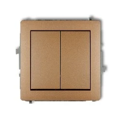 DECO Mechanizm łącznika jednobiegunowego ze schodowym (dwa klawisze bez piktogramów, osobne zasilanie) złoty metalik 8DWP‑10.21
