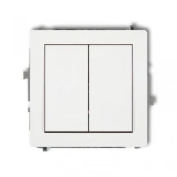 DECO Mechanizm łącznika jednobiegunowego ze schodowym (dwa klawisze bez piktogramów, wspólne zasilanie), biały mat 25DWP‑10.11