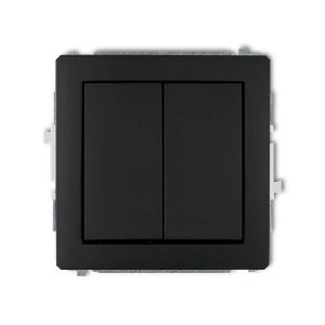 DECO Mechanizm łącznika jednobiegunowego ze schodowym (dwa klawisze bez piktogramów, wspólne zasilanie) czarny mat 12DWP‑10.11