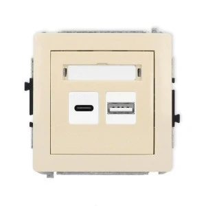 DECO Mechanizm ładowarki USB podwójnej USB C + USB A, 20W max., beżowy 1DCUSB‑8