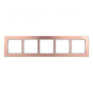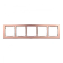 DECO Ramka uniwersalna pięciokrotna ‑ aluminium szczotkowane (ramka: kolor miedziany spód: biały) 9‑0‑DRA‑5