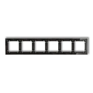 Ramka uniwersalna sześciokrotna DECO Art z efektem szkła przeznaczona do montażu sześciu modułów osprzętu elektroinstalacyjnego. Produkt łączy przezroczyste wykończenie ramki z czarnym spodem, oferując estetyczne wykończenie instalacji wewnętrznych.