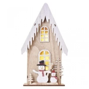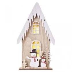 produkt: domek, barwa światła: ciepła biel, wymiary: 16 × 11,5 × 28,5 cm, zastosowanie: wewnętrzne, timer, pilot zdalnego sterowania: nie, typ zasilania: baterie (2× AA), źródło światła: LED, ilość LED: 3, moc: 0,2 W, napięcie wyjściowe: 3 V DC, stopień ochrony: IP20, żywotność: 10 000 godzin, materiał: drewniany, okres gwarancyjny: 2 lata, opakowanie: 1 szt., pudełko