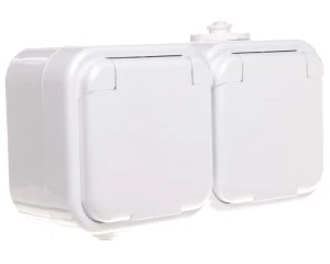 HYDRO Gniazdo hermetyczne podwójne z/u IP44 z klapką białe 120436
