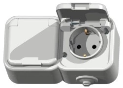 DELFINA Gniazdo hermetyczne z/u Schuko IP44 klapka szara GNH-1DS/30/w