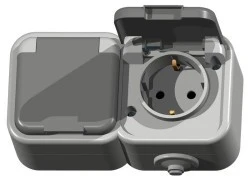 DELFINA Gniazdo hermetyczne z/u Schuko IP44 klapka szara GNH-1DS/30/w