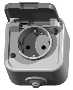 DELFINA Gniazdo hermetyczne z/u Schuko IP44 klapka szara GNH-1DS/30/w