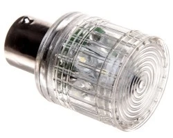 Dioda LED do kolumn świetlnych IK na napięcie 24V AC/DC, świecąca światłem ciągłym. Klosz z poliwęglanu, trzonek mosiężny. Biała.