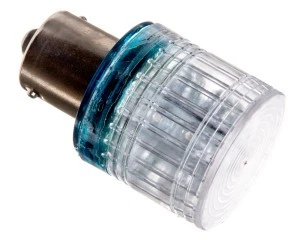Dioda LED do kolumn świetlnych IK na napięcie 24V AC/DC, świecąca światłem ciągłym. Klosz z poliwęglanu, trzonek mosiężny. Niebieska.