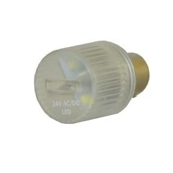 Dioda LED do kolumn świetlnych na napięcie 230V AC, błyskająca. Klosz z poliwęglanu, trzonek mosiężny. Biała.