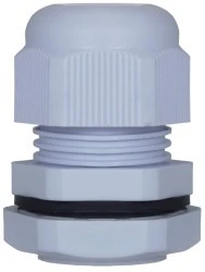 Dławnica PG13,5 przeznaczona do uszczelniania przejść przewodów przez obudowy urządzeń elektrycznych. Wykonana z poliamidu PA66 koloru szarego, w klasie palności UL94-2 oraz uszczelek z EPDM, specjalna konstrukcja dławicy zapobiega skręceniu się kabla wewnątrz i zapewnia dużą wytrzymałość na zerwanie. Łatwe w montażu. Konstukcja wydaje dzwięk kliknięcia przy dokręcaniu, możliwość ponownego odkręcenia. Pozwalają na osiągnięcie stopnia ochrony IP 68 (klasa szczelności 10 bar wg. EN60529). Temperatura pracy: -40 st.C do +100 st.C (krótkotrwała do +120 st.C). Oferowane w komplecie z uszczelką i nakrętką.
