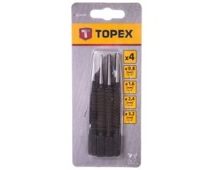 Dobijaki do gwoździ 4 szt. Topex 03A440Długość: 100 mmŚrednica główki: 7 mmRozmiary:0,8 mm1,6 mm2,4 mm3,2 mm