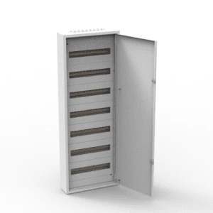 Wyposażona w siedem rzędów szyn DIN z możliwością instalacji 18 modułów na jednej szynie. Dno rozdzielnicy idealnie dopasowuje się do ściany.