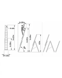 Drabina 3-elementowa z możliwością użycia jako drabina rozstawna, wysuwana albo jako dwie niezależne od siebie drabiny (modele 3x7 - 3x10 szczebli).