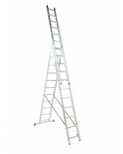 Drabina 3-elementowa z możliwością użycia jako drabina rozstawna, wysuwana albo jako dwie niezależne od siebie drabiny (modele 3x7 - 3x10 szczebli).