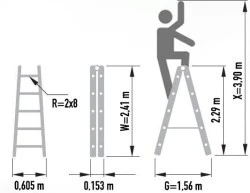 Drabina aluminiowa dwustronna ze szczeblami Forte została zaprojektowana dla profesjonalistów - z myślą o pracach w warsztatach, fabrykach oraz magazynach. Dostępna jest w konfiguracjach 3 - 14 szczebli, co daje możliwość pracy w przedziale 2,5 – 5,6 m. Drabina aluminiowa profesjonalna Forte to lekka drabina z wejściem z dwóch stron. Szczeble antypoślizgowe z obu stron drabiny zapewniają komfortową pracę. Drabina wyposażona jest w specjalną taśmę zabezpieczającą przed rozsunięciem się. Dzięki wzmocnionej konstrukcji, drabina spełnia najwyższe wymagania bezpieczeństwa.