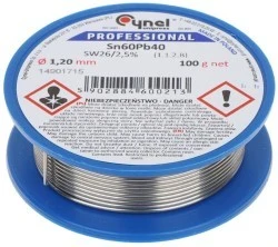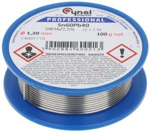 | Skład stopu: | 59.5 ... 60.5 % Sn 38.8 ... 40.5 % Pb < 0.7 % inne |