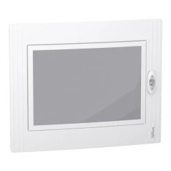 Przezroczyste drzwi do obudowy PrismaSeT XS. Zaprojektowane, aby były zgodne z obudową z 2 rzędami 24 modułów 18 mm. Stopień ochrony IP to IP40. Drzwi składają się z krawędzi stalowej z bezbarwnym szkłem. Kolor krawędzi jest biały (RAL 9003). Przeznaczone do nowych i modernizowanych instalacji w budynkach mieszkaniowych jak i małych komercyjnych. Drzwi mogą być zamontowane na obudowie podtynkowej lub natynkowej. Można je zamontować i otworzyć po prawej lub lewej stronie obudowy. Należy podać numer identyfikacyjny klucza blokującego. Całkowite wymiary to (szer.) 550mm x (wys.) 450mm x (gł.) 20mm. Waga: 3,570kg. Stopień ochrony IK to IK09. Temperatura pracy wynosi od -25°C do 60°C.