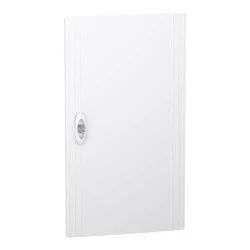 Pełne drzwi do obudowy PrismaSeT XS. Zaprojektowane, aby były zgodne z obudową z 3 rzędami 13 modułów 18 mm. Stopień ochrony IP to IP40. Drzwi wykonane są z technoplastiku. Kolor: biały (RAL 9003). Przeznaczone do nowych i modernizowanych instalacji w budynkach mieszkaniowych jak i małych komercyjnych. Drzwi mogą być zamontowane na obudowie podtynkowej lub natynkowej. Można je zamontować i otworzyć po prawej lub lewej stronie obudowy. Należy podać numer identyfikacyjny klucza blokującego. Całkowite wymiary to (szer.) 302mm x (wys.) 600mm x (gł.) 20mm. Waga: 820g. Odporność tworzywa sztucznego na płomienie i nienormalne ciepło wynosi 650°C. Stopień ochrony IK to IK09. Temperatura pracy wynosi od -25°C do 60°C.