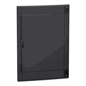 Przezroczyste drzwi do PrismaSeT XS. Zaprojektowane, aby były zgodne z obudową z 3 rzędami 18 modułów 18 mm. Stopień ochrony IP to IP40. Drzwi wykonane są z technoplastiku. Kolor: dymny. Drzwi są przeznaczone do sektorów mieszkalnych lub usługowych. Drzwi mogą być zamontowane na obudowie podtynkowej lub natynkowej. Można je zamontować i otworzyć po prawej lub lewej stronie obudowy. Całkowite wymiary to (szer.) 426mm x (wys.) 600mm x (gł.) 20mm. Drzwi wykonane są z technoplastiku. Odporność tworzywa sztucznego na płomienie i nienormalne ciepło wynosi 650°C. Stopień ochrony IK to IK09. Temperatura pracy wynosi od -25°C do 60°C.