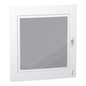 Przezroczyste drzwi do obudowy PrismaSeT XS. Zaprojektowane, aby były zgodne z obudową z 3 rzędami 24 modułów 18 mm. Stopień ochrony IP to IP40. Drzwi składają się z krawędzi stalowej z bezbarwnym szkłem. Kolor krawędzi jest biały (RAL 9003). Przeznaczone do nowych i modernizowanych instalacji w budynkach mieszkaniowych jak i małych komercyjnych. Drzwi mogą być zamontowane na obudowie podtynkowej lub natynkowej. Można je zamontować i otworzyć po prawej lub lewej stronie obudowy. Należy podać numer identyfikacyjny klucza blokującego. Całkowite wymiary to (szer.) 550mm x (wys.) 600mm x (gł.) 20mm. Waga: 4,460kg. Stopień ochrony IK to IK09. Temperatura pracy wynosi od -25°C do 60°C.