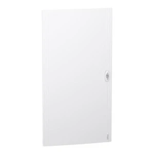 Pełne drzwi do obudowy PrismaSeT XS. Zaprojektowane, aby były zgodne z obudową z 6 rzędami 24 modułów 18 mm. Stopień ochrony IP to IP40. Drzwi wykonane są ze stali. Kolor: biały (RAL 9003). Przeznaczone do nowych i modernizowanych instalacji w budynkach mieszkaniowych jak i małych komercyjnych. Drzwi mogą być zamontowane na obudowie podtynkowej lub natynkowej. Można je zamontować i otworzyć po prawej lub lewej stronie obudowy. Należy podać numer identyfikacyjny klucza blokującego. Całkowite wymiary to (szer.) 550mm x (wys.) 1050mm x (gł.) 20mm. Waga: 7,630kg. Stopień ochrony IK to IK09. Temperatura pracy wynosi od -25°C do 60°C.