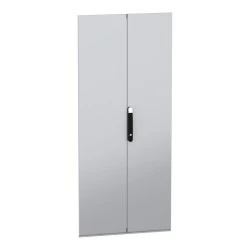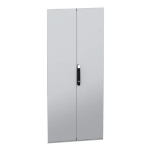 Stalowe, podwójne drzwi przeznaczone do montażu w wolnostojącej, modułowej obudowie PanelSeT SFN ze stali zdekarbonizowanej do różnych zastosowań. Kompatybilne ze stalową, wolonstojącą obudową Spacial SM. Ich nominalna wysokość i szerokość wynoszą odpowiednio 1800 mm i 800 mm. Drzwi wykonane są z blachy stalowej, a uchwyt z poliamidu 6 z dodatkiem 30% włókna szklanego. Epoksydowo-poliestrowa powłoka proszkowa zapewnia gładki wygląd. Są w kolorze szarym (RAL 7035) z czarnym (RAL 9005) uchwytem. Stopień otwarcia drzwi wynoszą do 120 stopni. Główne drzwi są wyposażone w czteropunktowy zamek z klamką, który ma 5 mm wkładkę z podwójnym prętem dla bezpieczeństwa, podczas gdy drugie drzwi mają system blokujący z klamką. Ten produkt jest oznaczony ekologicznym znakiem Green Premium, co świadczy o minimalnym zużyciu substancji niebezpiecznych.