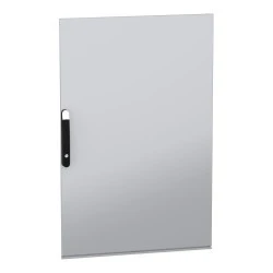 Stalowe drzwi przeznaczone do montażu w wolnostojącej, modułowej obudowie PanelSeT SFN ze stali zdekarbonizowanej do różnych zastosowań. Ich nominalna wysokość i szerokość wynoszą odpowiednio 1200 mm i 800 mm. Drzwi wykonane są z blachy stalowej, a uchwyt z poliamidu 6 z dodatkiem 30% włókna szklanego. Epoksydowo-poliestrowa powłoka proszkowa zapewnia gładki wygląd. Są w kolorze szarym (RAL 7035) z czarnym (RAL 9005) uchwytem. Stopień otwarcia drzwi wynosi do 120 stopni, co oznacza, że mogą być otwierane z dowolnej strony. Drzwi są wyposażone w czteropunktowy zamek z klamką, który ma 5 mm wkładkę z podwójnym prętem dla bezpieczeństwa. Ten produkt jest oznaczony ekologicznym znakiem Green Premium, co świadczy o minimalnym zużyciu substancji niebezpiecznych.