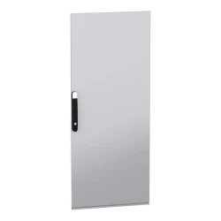 Stalowe drzwi przeznaczone do montażu w wolnostojącej, modułowej obudowie PanelSeT SFN ze stali zdekarbonizowanej do różnych zastosowań. Ich nominalna wysokość i szerokość wynoszą odpowiednio 1400 mm i 600 mm. Drzwi wykonane są z blachy stalowej, a uchwyt z poliamidu 6 z dodatkiem 30% włókna szklanego. Epoksydowo-poliestrowa powłoka proszkowa zapewnia gładki wygląd. Są w kolorze szarym (RAL 7035) z czarnym (RAL 9005) uchwytem. Stopień otwarcia drzwi wynosi do 120 stopni, co oznacza, że mogą być otwierane z dowolnej strony. Drzwi są wyposażone w czteropunktowy zamek z klamką, który ma 5 mm wkładkę z podwójnym prętem dla bezpieczeństwa. Ten produkt jest oznaczony ekologicznym znakiem Green Premium, co świadczy o minimalnym zużyciu substancji niebezpiecznych.